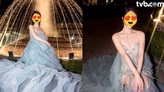 東張女神藍色露肩薄紗裙仙氣爆燈 多角度晒靚裙狂吸Like