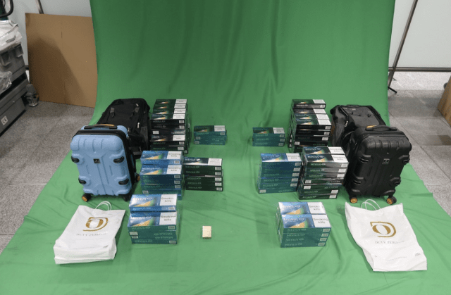 海關人員周一(13日)在香港國際機場截查一對抵港男女旅客,並在他們的個人行李內共檢獲約2.4萬支未完稅香煙,市值共約9.8萬元,應課稅值共約7.9萬元。該兩名分別47歲女旅客和43歲男旅客隨即被捕,因管有未完稅香煙及未有向海關人員作出申報,涉嫌違反《應課稅品條例》,周三(15日)在西九龍裁判法院各被判處監禁3個月和罰款2,000元。海關對判刑表示歡迎,指監禁判刑具相當阻嚇作用,並充分反映罪行的嚴重性。根據《應課稅品條例》,煙草屬應課稅品。任何人士若進口、處理、管有、售賣或購買私煙,即屬違法。而根據《進出口條例》,任何人進口另類吸煙產品即屬違法,一經定罪,兩者均最高可被判罰款200萬元及監禁7年。