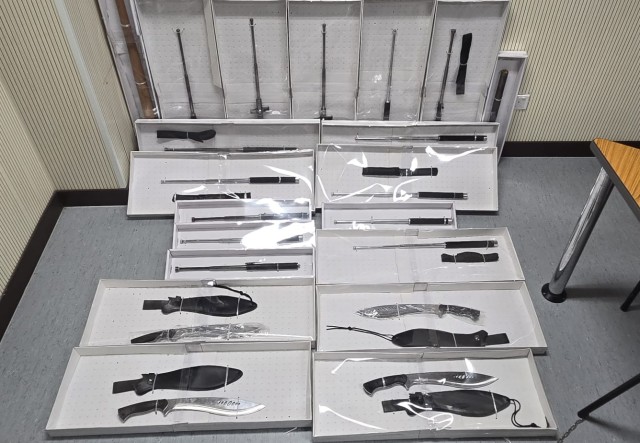 元朗警區反三合會行動組第二隊人員,根據情報及經深入調查後,昨日(15日)下午在天水圍區內展開反三合會行動。行動中,人員突擊搜查天水圍一村屋單位,在單位內檢獲十四枝伸縮棍、四把開山刀及兩枝棒球棍;並以涉嫌「藏有違禁武器」及「管有攻擊性武器」拘捕一名31歲本地男子及一名23歲本地女子。被捕人現正被扣留調查。警方重申,藏有違禁武器及管有攻擊性武器均屬刑事罪行,根據香港法例第217章《武器條例》第4條,任何人管有違禁武器,即屬犯罪,一經定罪,可處罰款$10,000及監禁3年,而管有攻擊性武器,根據香港法例第228章 《簡易程序治罪條例》第17條,意圖將攻擊性武器作任何非法用途而管有,一經定罪,最高可罰款$5,000及監禁2年,市民切勿以身試法。