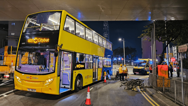灣仔城巴撞路面工程發電機 男工人閃避不及被擊傷