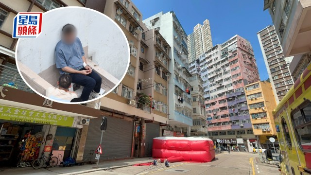珍惜生命│大角咀男子手腕淌血危坐天台 警方消防游說 開氣墊戒備