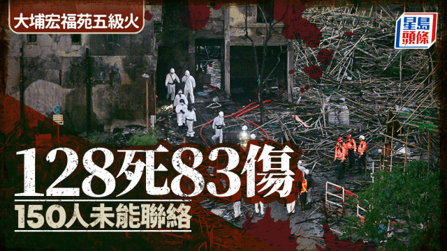 共有近2000個單位的大埔居屋宏福苑周三(26日)發生五級大火,至今造成最少83人死亡,包括1名37歲消防員殉職,逾200人失聯。部分居民死裏逃生,但有不少人稱仍與家人失聯,有人趕赴現場在寒風中苦候消息,盼早日能尋回家人。大埔宏福苑五級火最新情況(11月28日)【00:10】消防處表示,就11月26日大埔宏福苑五級火警,消防處的滅火救援工作仍然進行中。截至今日(11月28日)凌晨零時,火警共造成83人死亡,當中一名死者為消防員。另由消防處處理的傷者共有76人,包括11名消防員。 死者 83人(包括1消防員) 傷者 逾70人(包括11消防員) 被捕人 3名男子(涉誤殺,52至68歲,工程公司兩董事及工程顧問) 涉案大廈 7座(屋苑1983年落成,共8廈每座248單位,僅宏志閣未波及) 出動消防員 逾1,250名(304架次消防車輛,98輛救護車) 宏福苑8幢大廈自去年7月起展開大維修,涵蓋外牆打鑿、換喉、石屎修葺及窗眉重建等項目。外牆棚架自去年8月起搭建,至今已超過一年。事發時,宏昌閣外的保護網首先起火,其後現場傳出多下爆炸聲,火勢再蔓延至周邊6幢大廈,直到周四(27日)傍晚火勢始受控。大埔宏福苑五級火|增至65死70傷 梯間發現生還者 醫管局一員工失聯工程公司兩董事及一名工程顧問被捕保安局局長鄧炳強及消防處處長楊恩健早前表示,消防人員在發現涉事大廈多個單位的玻璃窗貼上發泡膠板,每層電梯大堂窗外亦都被發泡膠封閉,極易燃燒並助長火勢擴散,而且保護網、防水帆布、塑膠布等疑未符合防火標準。警方拘捕涉事工程公司的兩名董事和一名工程顧問(52至68歲),他們因嚴重疏忽導致重大傷亡,涉嫌「誤殺」被捕。大埔宏福苑五級火|涉事公司董事及工程顧問黑布蒙頭 被押返元朗馬鞍山住所搜證行政長官李家超一度到現場視察,指目前有500名居民入住臨時中心,民青局已物色1000個單位,包括青年宿舍及酒店,可入住約一至兩星期,後續則以過渡性房屋、房協專用安置單位為主,初步可提供1800個單位,並向每戶受影響居民派1萬元。另外,政府將舉辦悼念活動,所有政府主辦慶祝活動取消,官員減少出席不必要活動。大埔宏福苑五級火|政府成立援助基金投入3億元 向每戶派1萬元 設中銀捐款戶口另外,當局於廣福邨社區會堂設辨認處,讓家屬入內憑照片辨認失聯家人。有居民表示,進入會堂後,當局提供一批遺體照片,主要分為男、女兩批照片,各有30至40具遺體照片,每張照片下會寫明發現遺體時的資訊,例如樓層單位、遺體旁的個人財物等。職員事前會提醒他們事前有心理準備,部分遺體的照片或會令人不安,若在過程中感到不適,可隨時提出先休息再續,現場亦有多名紅十字會心理學在場提供情緒支援。大埔宏福苑五級火|逾百居民排隊入社區會堂認屍 當局供遺體相辨認 有人激動痛哭天價維修費達3.3億 住戶屢與法團爆爭拗宏福苑於1983年入伙,由八座樓宇組成,提供1,984個單位,屋苑人口接近5,000人。屋苑早於2016年接獲政府強制驗樓法定通知,惟直至去年1月,時任業主立案法團才通過涉款共3.3億元的大型維修工程。根據方案,每戶業主需攤分15.6萬至18.2萬元,分6期供款。此舉當時引起大批業主不滿,質疑造價過高及招標過程透明度不足,加上曾見工人在竹棚吸煙,單位窗台亦發現煙頭,多次與法團爆發激烈爭拗。大埔宏福苑五級火.多圖|維修工程造價3.3億 住戶半年要交18萬 一文看清工程時間線!翻查宏福苑業主立案法團網頁,於2024年10月曾刊登工程承建商「宏業建築工程有限公司」通告,指為配合外牆工程,會為大廈外牆採取保護措施,包括玻璃窗保護、設置泥頭槽及木板等。《星島頭條》記者到現場了解,見到宏福苑多個單位的窗戶均貼上白色的發泡膠板,大部份更已被燃燒,而保護網亦幾乎被燒毀,僅餘竹棚在外牆。廉政公署今日(27日)成立專案小組,就大埔宏福苑大維修工程可能涉及貪污展開全面調查。