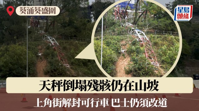 葵涌冧天秤│天秤殘骸仍在山坡 上角街解封可行車 巴士仍須改道