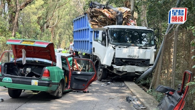 粉錦公路綠的迎頭撼夾斗貨車 2人被困 的士女乘客死亡