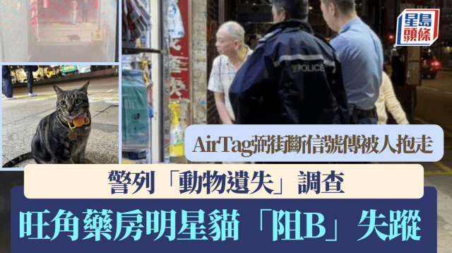 旺角藥房明星貓「阻B」驚傳失蹤 弼街AirTag信號斷絕 警列「動物遺失」調查
