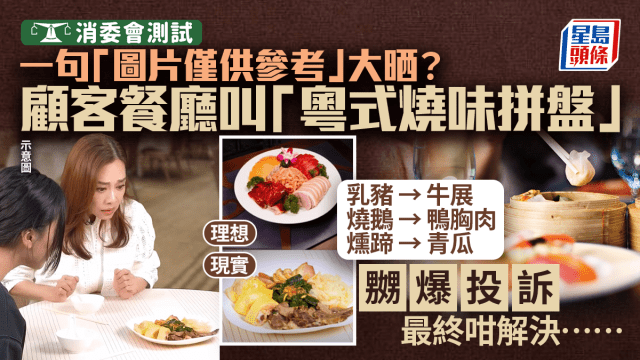 消委會餐廳投訴︱一句「圖片僅供參考」大晒?燒味拼盤貨不對辦 燒鵝/乳豬變鴨胸/青瓜