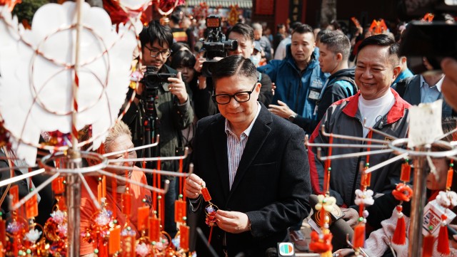 車公廟求籤︱劉業強為香港求得第二十二籤中籤 連續第九年中籤 籤文:但凡見利莫忘義
