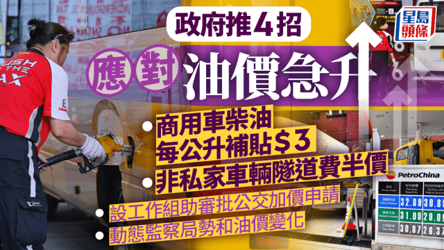 油價急升︱政府推4招應對:商用車柴油每公升補貼$3、非私家車輛隧道費半價 為期兩個月