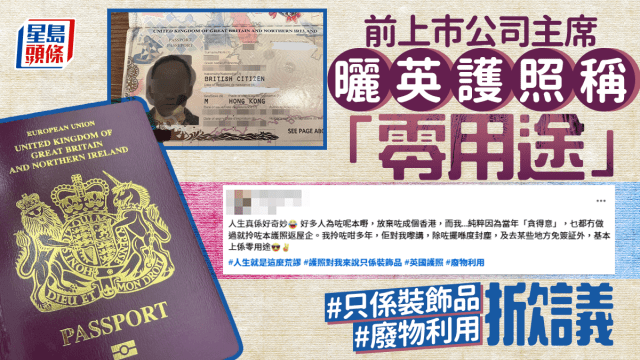 前上市公司主席曬英護照稱「零用途」 Hashtag「只係裝飾品」「廢物利用」掀議|Juicy叮