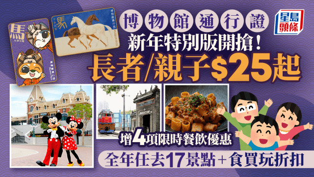 康文署博物館通行證「馬年別注版」開搶!長者/親子$25起 全年任去17景點+食買玩折扣 增4項限時餐飲優惠