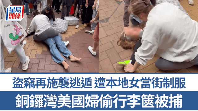 銅鑼灣美國婦偷行李篋再施襲逃遁 本地女當街制服:嚟香港偷人嘢仲打人!