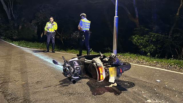 飛鵝山道電單車撞路中大石釀兩傷 乘客昏迷送院搶救