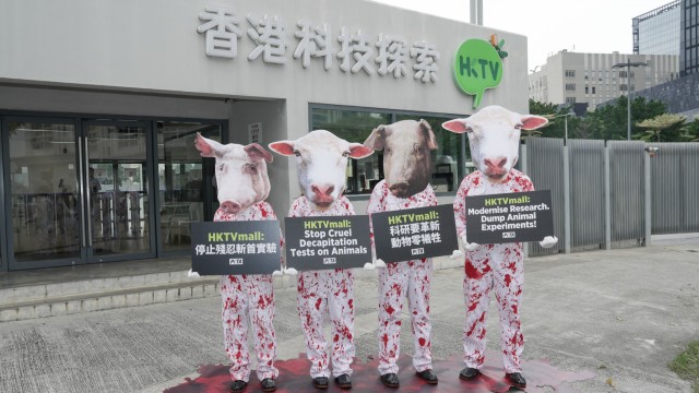 動保團體HKTVmall總部外抗議 促停止動物實驗