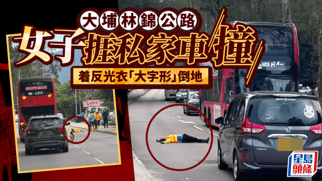 大埔林錦公路女子捱私家車撞 身穿反光衣「大字形」倒地