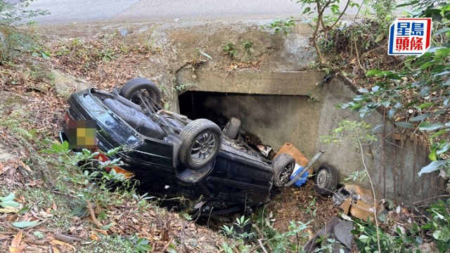 荃錦公路豐田「小鋼炮」墮坡反肚直插引水道 司機受傷一度被困