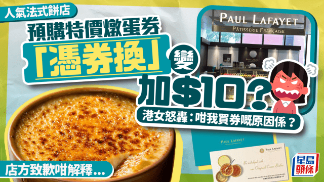 Paul Lafayet預售焦糖燉蛋券 「憑券換」變加$10 港女怒轟:咁我買券嘅原因係? 店方致歉咁解釋...