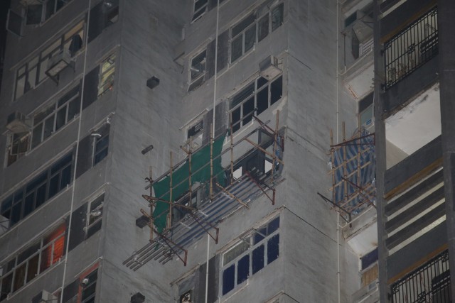 元朗朗屏邨外牆棚架起火 幸無人受傷 逾50人疏散