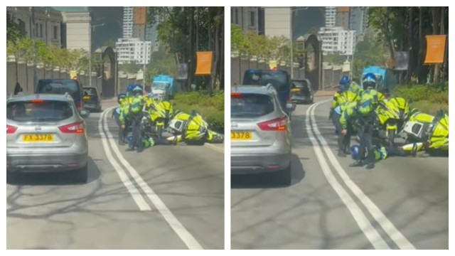 淺水灣道兩警察電單車相撞 1警員倒地受傷送院