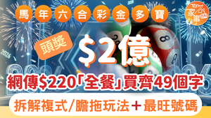 2億六合彩攻略︱新春金多寶頭獎2億!$220「全餐」買齊49個字?拆解複式/膽拖玩法+最旺號碼