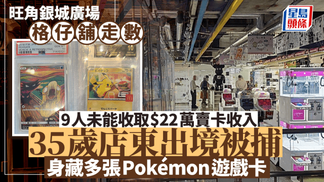 落馬洲口岸丨旺角格仔舖結業 疑捲65檔主Pokémon卡及銷售額潛逃 35歲男店東出境被捕