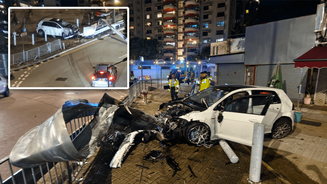 深井迴旋處私家車自炒 毀5米防撞欄車頭冚飛脫 路面遺長長煞車痕