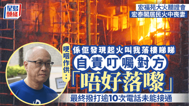 宏福苑聽證會|落樓視察火勢後與妻子失聯 自責着妻「唔好落嚟」:早一兩分鐘打俾佢可能無事
