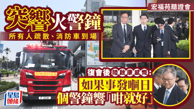 宏福苑聽證會︱會場突響警鐘須疏散 聆訊終止約20分鐘 陸啟康慨嘆:讓大家反省火警鐘重要性