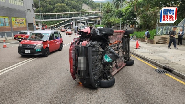 葵涌和宜合道的士翻側 司機乘客被困獲救