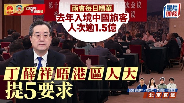 兩會每日精華︱去年入境中國旅客人次逾1.5億 丁薛祥晤港區人大提5要求