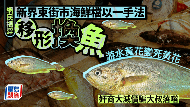 新界東海鮮檔卑劣手法移形換魚 網民揭穿游水黃花變死黃花 奸商大減價騙大叔落㗳|Juicy叮