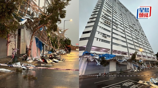 黃雨|鴨脷洲狂風來襲 海傍工廈棚架樹木倒塌 波及3途人及車輛