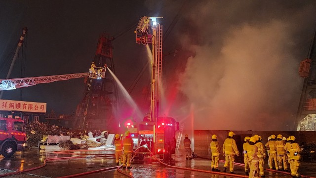 新油麻地貨物裝卸區躉船起火 消防射水撲救