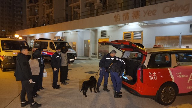 將軍澳怡明邨截查可疑的士遇查 警檢獲依托咪酯等毒品 兩人被捕