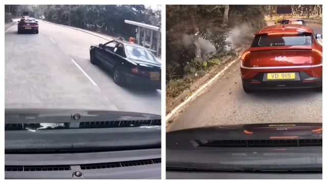 車Cam直擊|荃錦公路AE92衝落山冒煙 事前曾逆線爬頭 片主:使唔使咁搏呀?
