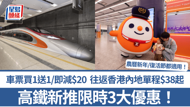 高鐵新推限時3大優惠!車票買1送1/即減$20 往返香港內地單程$38起 農曆新年/復活節都適用