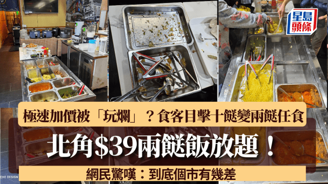 北角$39兩餸飯放題!極速加價被「玩爛」?食客目擊剩兩餸任食 網民驚嘆:到底個市有幾差