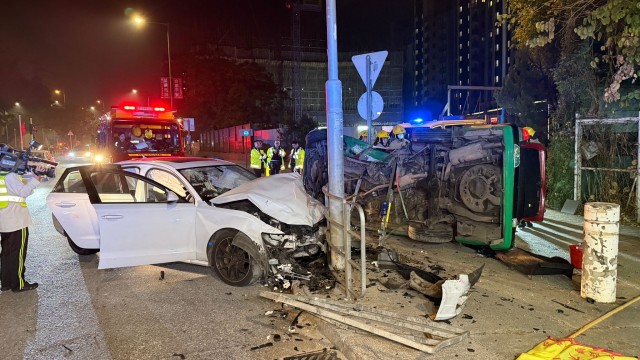錦田映河路兩車相撞釀3傷 的士翻側2人被困 女乘客昏迷送院