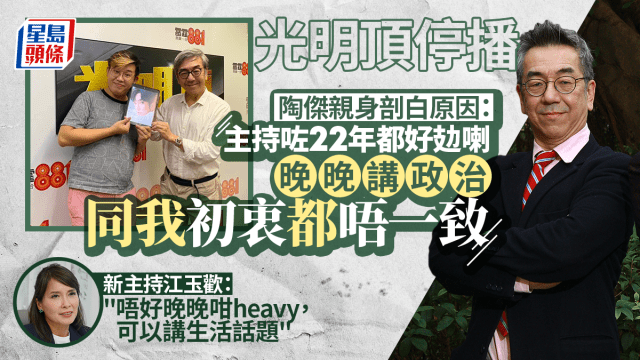 光明頂停播︱商台節目改革 陶傑《光明頂》周五晚最後播 陳志雲江玉歡新節目取代