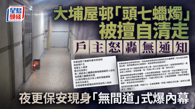 大埔屋邨「頭七蠟燭」被擅自清走 戶主怒轟無通知 夜更保安「無間道」式爆內幕|Juicy叮