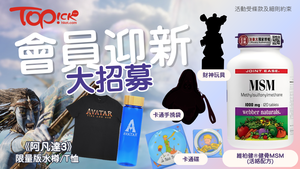 TOPick會員迎新賞|TOPick新會員大招募 送你「健骨MSM/財神LEGO/阿凡達3限量版T恤/小忌廉大浴巾/福袋/卡通碗碟」 !">