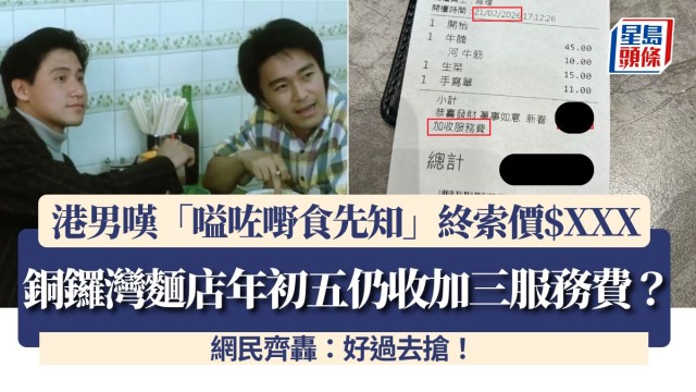 銅鑼灣麵店年初五仍收加三服務費?港男嘆「嗌咗嘢食先知」終索價3位數 網民轟:好過去搶!