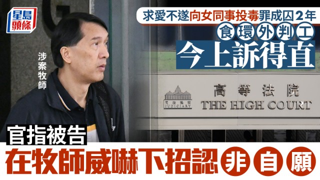 求愛不遂向女同事投毒罪成囚2年 食環外判工上訴得直撤定罪 官指牧師威嚇下被告招認非自願