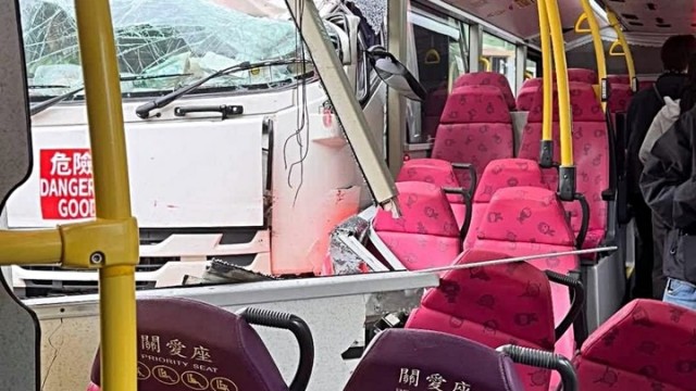 秀茂坪九巴與油缸車相撞 3人受傷 巴士下層損毀嚴重