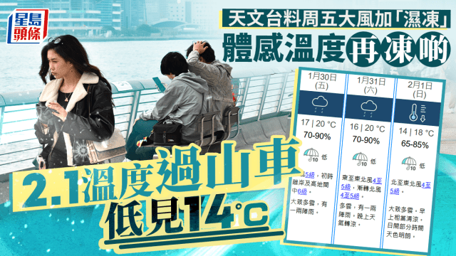 天氣寒冷|天文台料周五風勢頗大濕度90% 體感溫度或更低 2.1低見14°C