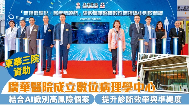 東華三院資助 廣華醫院成立數位病理學中心 結合AI識別高風險個案 提升診斷效率與準繩度