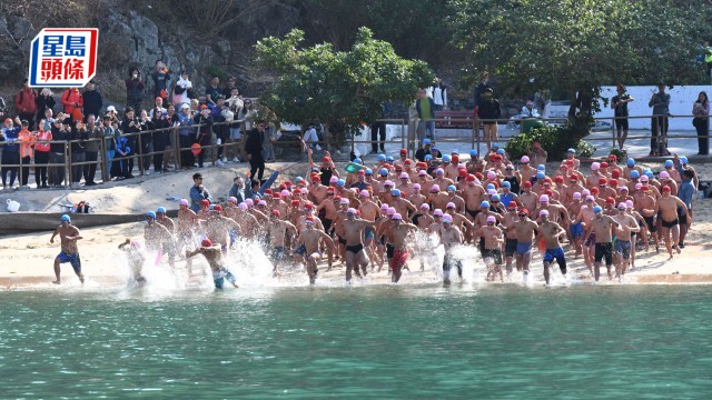 淺水灣元旦冬泳逾1100人參加 最年長79歲、最年輕6歲 參賽者:身體健康最重要