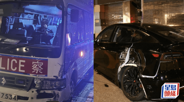 尖沙咀警車與Tesla相撞 女乘客受輕傷 有人疑看錯燈釀禍