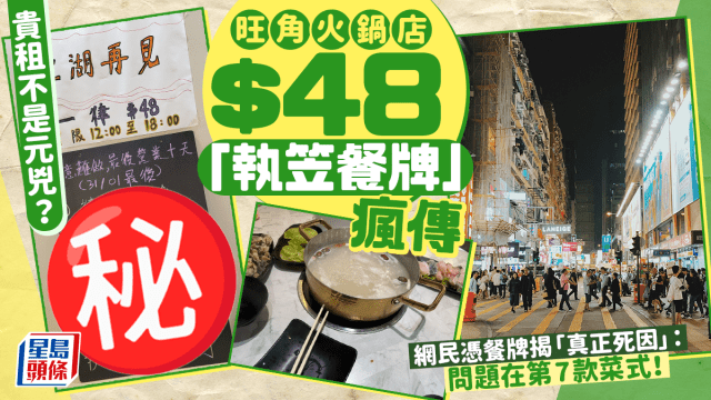 貴租不是元兇?旺角火鍋店$48「執笠餐牌」瘋傳 網民憑餐牌揭「真正死因」:問題在第7款菜式!|Juicy叮