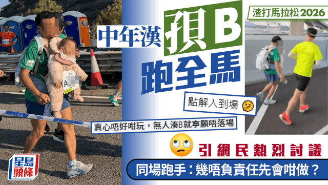 渣打馬拉松2026︱中年漢孭B跑全馬惹熱議 同場跑手:幾唔負責任先會咁做?
