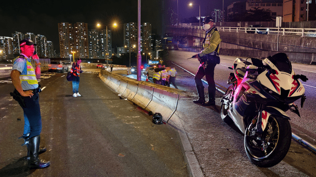 九龍灣電單車自炒 鐵騎士拋飛撞燈柱亡 跌落對面行車線遺大灘血迹